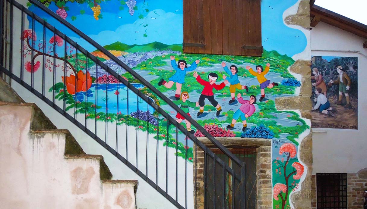 In questo paesino nacque Annunziata Scipione, una delle più grandi artiste naïf italiane che ha saputo raccontare l’identità delle popolazioni agreste del Gran Sasso attraverso i suoi capolavori. È proprio per celebrare la pittrice che, nel 2001, gli abitanti del borgo decisero di rinnovare le strade, le piazze e i vicoli, colorando le facciate della case con disegni e pitture murali.