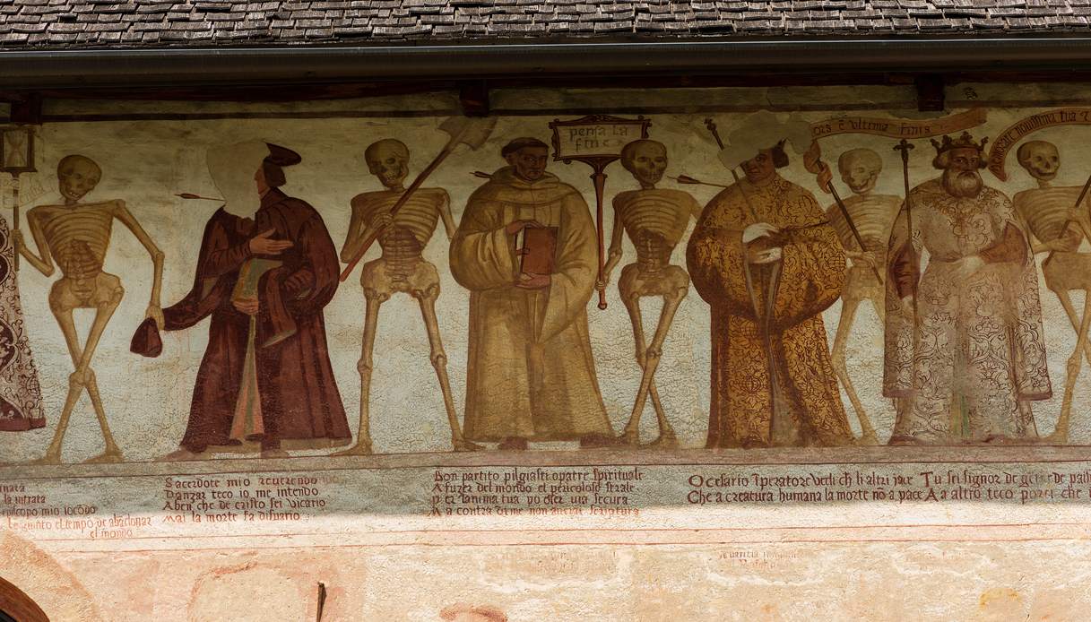 Passeggiando tra le tipiche vie del borgo, vi ritroverete al cospetto di alcuni edifici da non perdere come la peculiare Chiesa di San Vigilio che sfoggia una bellissima facciata medievale ricoperta da affreschi di epoche diverse. Uno dei più importanti è la “Danza macabra” di Simone Baschenis che raffigura nobili e plebei che sono praticamente uguali di fronte alla morte.