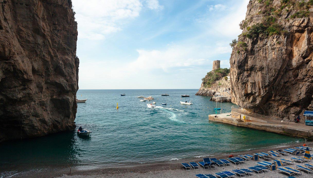 La sua bellezza si erige alla base del Monte Tre Pizzi e arriva fino a Marina di Praia, una delle spiagge più belle d’Italia. Fatta di ciottoli e incastonata in un’alta scogliera, viene baciata dal sole soltanto nelle ore centrali della giornata, ma alla sera riprende vita grazie anche all’Africana, una delle discoteche più cool della Costiera, posto frequentato anche da molti personaggi famosi tra cui, nel 1962 durante le sue vacanze, persino da Jaqueline Kennedy moglie del presidente degli Stati Uniti John Fitzerald Kennedy. Da questa spiaggia parte una delle passeggiate più romantiche della zona che gira intorno alla scogliera subito sotto la Torre a Mare, l’antica torre saracena di avvistamento.