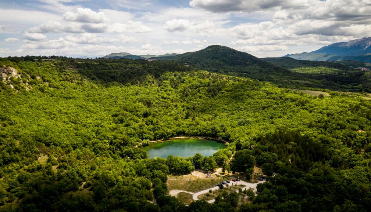 Di un verde scintillante e dalla forma circolare perfetta – tanto da sembrare dipinto da Giotto – è il Lago Sinizzo. Si tratta di un grazioso bacino d’acqua dolce che sorge tra le montagne del territorio di San Demetrio ne’ Vestini, in provincia dell’Aquila. Un luogo ubicato poco fuori l’abitato del paese e che si distingue per essere uno dei posti più belli di tutto l’Abruzzo, oltre ad essere considerato la “spiaggia degli aquilani”.