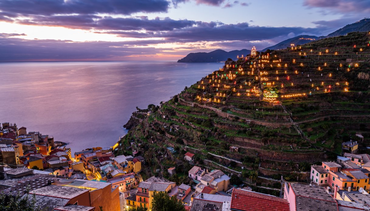 Il più grande presepe luminoso al mondo è quello di Manarola. Un appuntamento imperdibile per chi ama il Natale e riesce a fare un salto nelle Cinque Terre per le feste. Dall’8 dicembre a metà gennaio 2025 si può ammirare questo spettacolo suggestivo ed evocativo all’aperto che colora le serate invernali durante le feste di Natale da tanti anni. Una manifestazione tradizionale considerata ormai un rito che incanta grandi e piccoli provenienti dall’Italia e dal mondo, sottolineando lo spirito comunitario e la creatività del territorio.