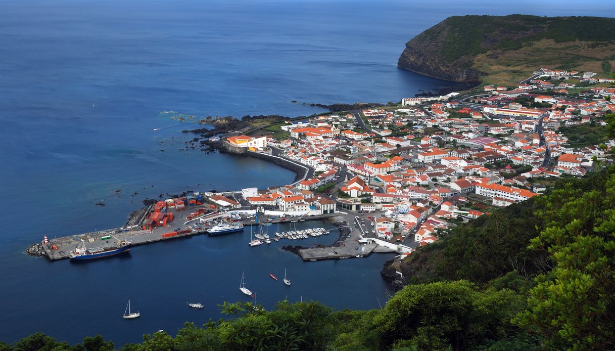 La cittadina e il porto di Velas, sull'isola di São Jorge
