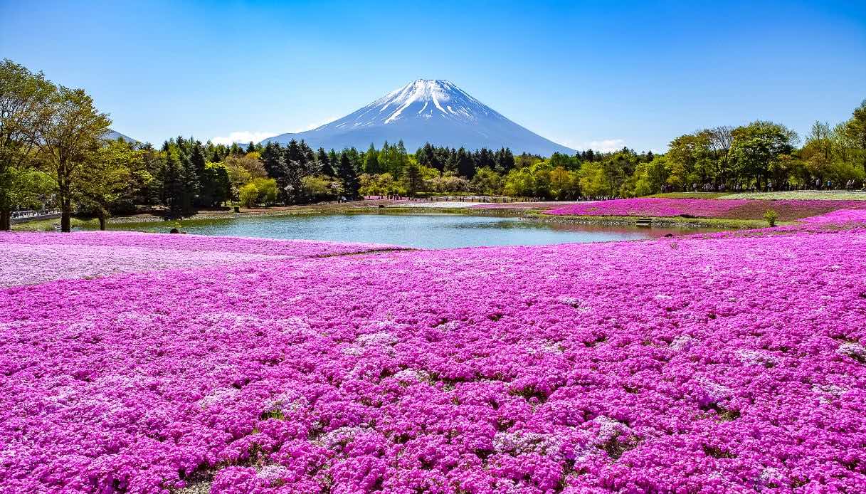 È qui che un tappeto di fiori rosa, incorniciato da un paesaggio mozzafiato nel quale si staglia grandioso il Monte Fuji, si allunga come per magia verso l’infinito creando un paesaggio idilliaco e surreale. Che è forse il più bello del mondo.