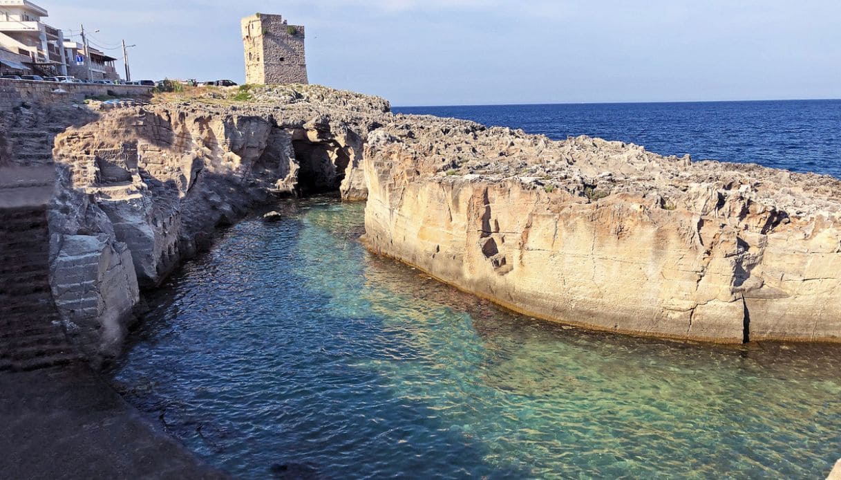 Sempre sull’Adriatico, le piscine naturali di Marina Serra sono uno dei luoghi più spettacolari della Puglia, inspiegabilmente meno conosciute da chi arriva da fuori rispetto alle località più turistiche della costa ionica e dei dintorni di Gallipoli. Nei weekend dei mesi estivi, queste piscine sono sovrappopolate, ma di residenti e turisti locali più che altro. Il paese è piccolo, con una torre costiera, Torre Palane, chiusa al pubblico. La piscina è qualcosa di incredibile, un’insenatura artificiale creata tra le rocce, che chiudono una vasca naturale di acque tranquille e calde. Chiamata la Grotta de’ Monaci, pare che questa vasca paradisiaca sia stata voluta dai monaci, che venivano qui a trascorrere qualche ora di relax lontano da occhi sconosciuti. La piscina è pubblica e non ha alcun servizio per la balneazione; ci sono però alcuni piccoli terrazzamenti per stendere l’asciugamano e sdraiarsi a prendere il sole. Proprio a ridosso della piscina si trova un bar per il pranzo e gli snack. Nel paese ci sono altri pochi e piccoli esercizi commerciali, ma bisogna andare a Tricase per trovare supermercati e ristoranti.