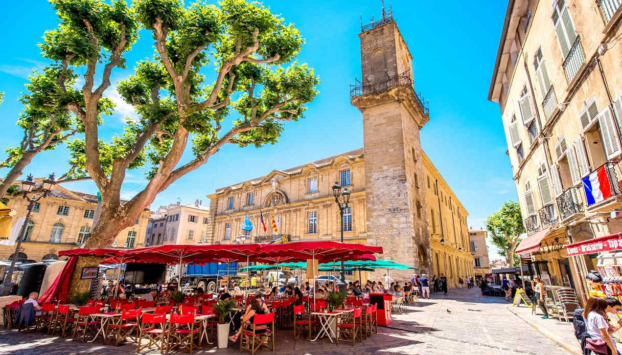 Luoghi simbolo di Aix-en-Provence sono l’Hotel Particuliers, nel quartiere Mazarine, di fronte al quale si trova la famosa fontana dei quattro delfini, il mercato di Aix a Place des Prêcheurs, dove trovare prodotti freschi di ottima qualità e Cours Mirabeau, una delle vie principali della città, un viale alberato con banchi di souvenir, prodotti artigianali e bar, dove degustare un caffè accompagnato dall’immancabile croissant. Da non perdere anche una delle biblioteche più belle del mondo.