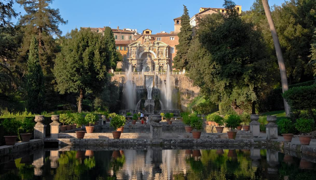 Villa d’Este di Tivoli si estende su un’area di 4,5 ettari e si plasma perfettamente lungo dei ripidi pendii. Numerose sono le fontane e i bacini ornamentali che fanno del parco in cui si trova immersa il primo esempio di giardino all’italiana del 1500.