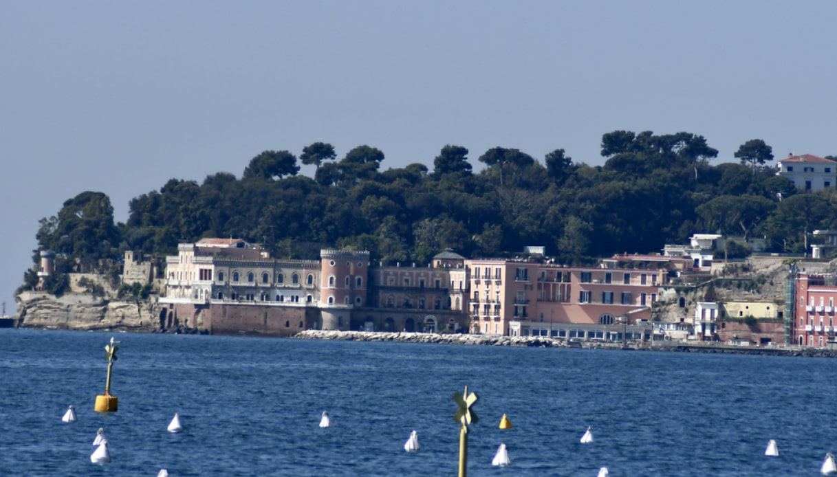 È dal 2004 che gli esterni della dimora rappresentano Palazzo Palladini, il condominio in cui la soap opera Un posto al sole è ambientata, una delle più amate in Italia. La sua architettura è particolare: risale al Seicento, e si caratterizza per la sua forma turrita e merlata (fu costruita infatti su ruderi d’epoca romana, e su torri d’avvistamento del periodo aragonese), per il panorama suggestivo che regala affacciandosi sul mare, per i suoi giardini pensili. Perché sono proprio i giardini, a conquistare più di tutto: il parco, a strapiombo sull’azzuro del mare, è terrazzato su cinque livelli e vanta giardini all’inglese, vegetazione tipica della macchia mediterranea e piante di grande pregio.