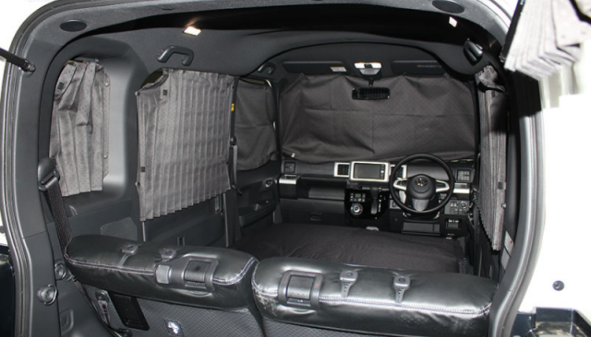 Di giorno è un’auto comune, la notte, invece, diventa un posto in cui dormire. Il telaio scatolato consente di trasformarsi in un abitacolo davvero spazioso: una volta che i sedili sono piegati, posizionando il materasso, l’intero spazio interno si trasforma in un ampio letto dalla lunghezza di 185 centimetri. Le tende, poi, impediscono alla luce di entrare dai finestrini e conferiscono all’abitacolo una maggiore privacy.