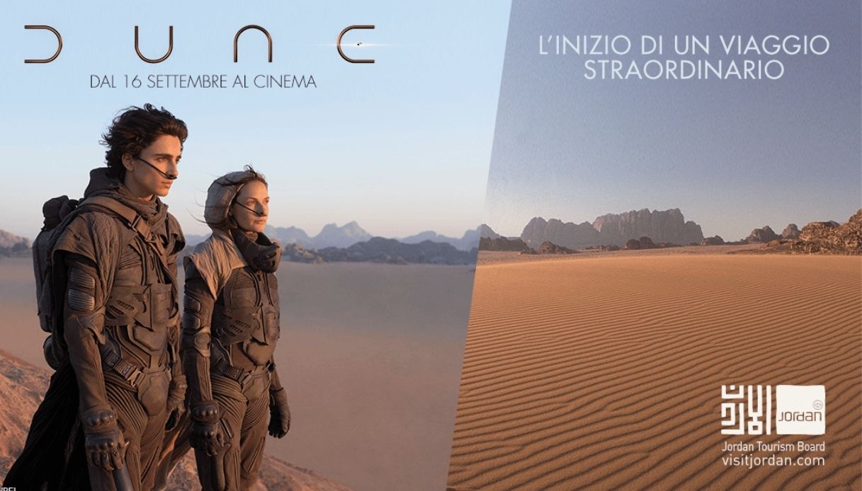 Un viaggio nella spettacolare Giordania e un’avventura mozzafiato: Dune è il film più atteso dell’anno. La pellicola, in uscita in Italia il 16 settembre, porta gli spettatori alla scoperta di un Paese unico e straordinario. Il regista Denis Villeneuve e il cast, composto da attori del calibro di Timothée Chalamet, Zendaya, Jason Momoa e Oscar Isaac, ha trascorso settimane in Giordania. Fra il deserto di Wadi Rum e lo scenografico Wadi Araba infatti è stato ambientato il kolossal tratto dal romanzo del 1965 di Frank Herbert. La storia è quella di Paul Atreides, nobile destinato a un grande futuro, che dovrà guidare le tribù nomadi in un’aspra battaglia per controllare Arrakis, un pianeta desertico in cui l’unico prodotto di valore è La Spezia, una droga.