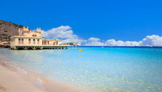 Mondello, suggestiva località marinara situata a 11 chilometri da Palermo, ha subito una straordinaria trasformazione alla fine dell’Ottocento, passando da semplice borgo di pescatori a rinomata stazione balneare. Si tratta di una vera e propria gemma che si sviluppa tra il maestoso Monte Pellegrino e il Monte Gallo, con una baia incantevole dalla spiaggia di sabbia finissima lambita da un mare turchese che sembra uscito da un sogno.