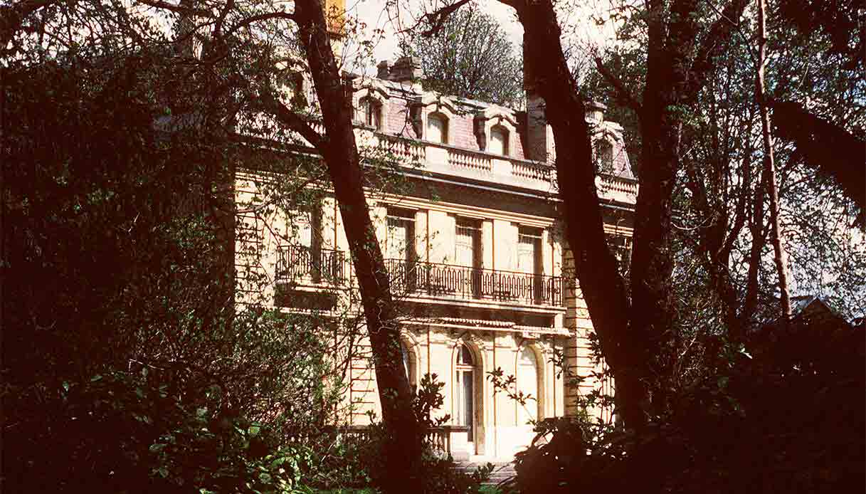 Situato al 4 di route du Champ d’Entraînement, nel XVI arrondissement, tra il Bois de Boulogne e il parco di Bagatelle, quasi nel Comune limitrofo di Neuilly-sur-Seine, questo hôtel particulier, chiamato inizialmente Chateau Le Bois, per la vicinanza, allora, con i boschi (“bois”), fu costruito nel 1859 dall’architetto Gabriel Davioud per conto del famoso urbanista parigino Georges-Eugène Haussmann, che oggi dà il nome a un trafficatissimo viale parigino.