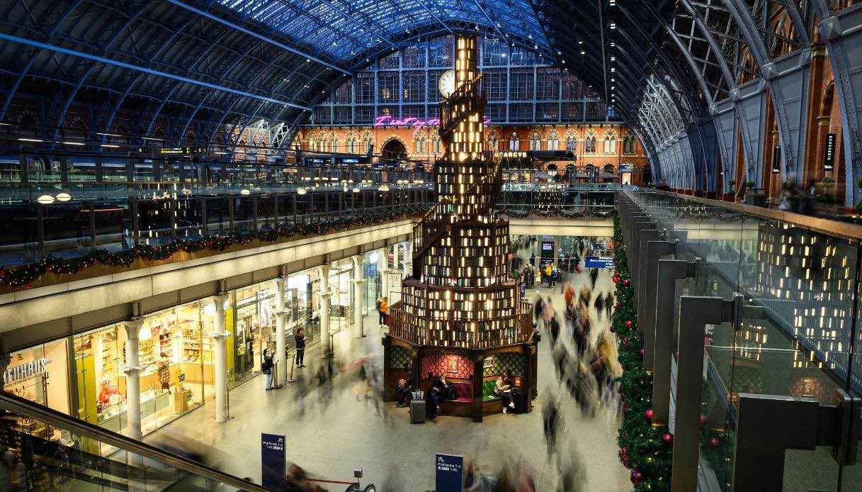 Le decorazioni natalizie, infatti, hanno invaso e pervaso anche la splendida stazione di St Pancras. Insieme a loro è stato acceso un albero di Natale dalle forme incantate: una torre gigantesca fatta di libri che celebra tutta la magia del periodo.