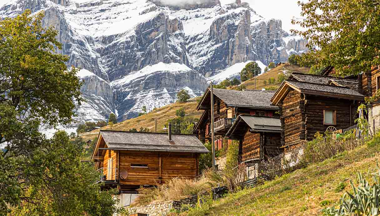 Una scelta fatta non solo in virtù della strategica posizione del paese, dal quale si gode la vista di uno degli scenari più spettacolari del Paese, ma anche per quel complesso omogeneo di abitazioni, vecchi chalet e fienili, in tutto 244 edifici in legno, considerati come luoghi di interesse nazionale. La sua posizione che domina la Valle del Rodano e le montagne fa sì che i pochi edifici del borgo siano dislocati in maniera sfalsata sul pendio restituendo un’immagine favolistica e quasi surreale.