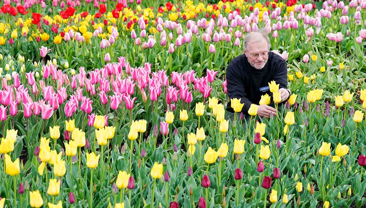 Ed è proprio fra il campo da tennis e gli ampi cortili che, ogni anno, vengono piantati i bulbi dei tulipani. A occuparsene sono giardinieri e floricoltori altamente specializzati, che oltre a far fiorire le varietà più note (singoli, doppi, a giglio, sfrangiati, screziati, botanici nani, Trionfo, Darwin, Rembrandt, Kaufmanniana, Fosteriana e Greigii), riescono a realizzare veri e propri capolavori perfettamente integrati all’architettura, come la “ciambella” di fiori che circonda la fontana Tudor.