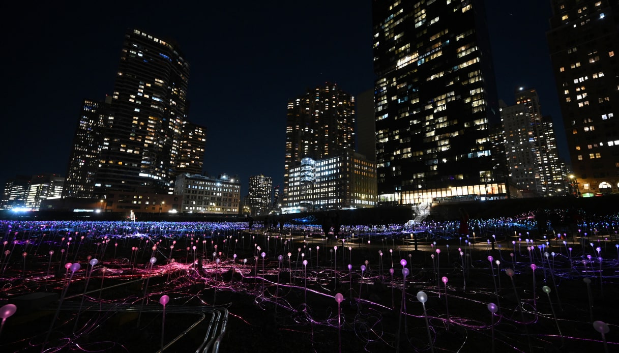 Magica ed eterea, l’installazione si inserisce in un’ambientazione impareggiabile, con lo skyline della città da una parte e il lungomare dell’East River a fare da sfondo.