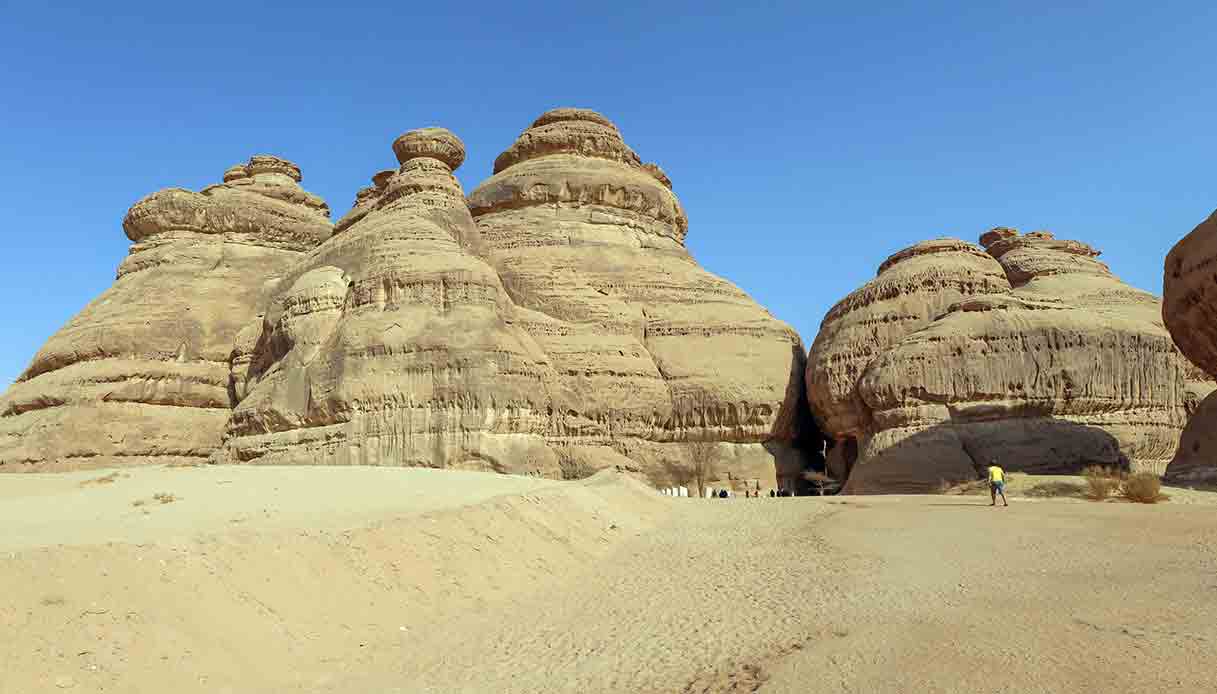 In questo angolo remoto affiorano dalla sabbia del deserto 131 monumenti di straordinaria bellezza, circondati da una natura unica, fatta di montagne di arenaria e altipiani, di rocce dalle forme più strane e di stretti “wadi” (passaggi) e canyon e persino di rigogliose oasi coltivate con palme da datteri.