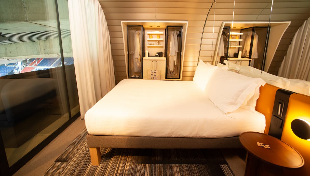 La collaborazione innovativa tra Novotel Hotels, ALL e il PSG ha portato all’apertura de “La Suite Novotel by ALL.com“, una camera d’albergo unica nel suo genere, situata all’interno del Parc des Princes, lo storico stadio del PSG. Il progetto è stato sviluppato per offrire un’esperienza che va oltre il semplice soggiorno: qui, gli appassionati di calcio e gli amanti del lusso possono vivere un momento irripetibile, combinando l’adrenalina della partita con l’eleganza e il comfort di un hotel di alta classe.