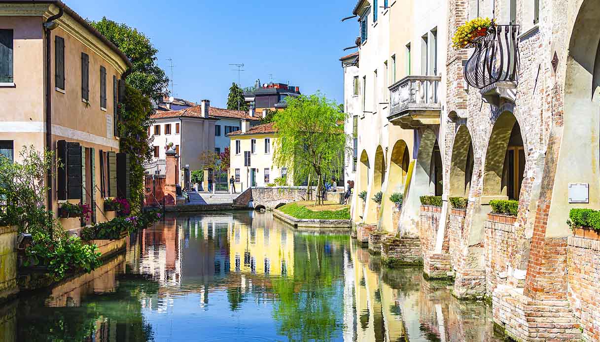 Spesso scelta come pausa dal sovraffollamento della Serenissima, Treviso in realtà è una città che stupisce e incanta sin dal primo sguardo. I canali d’acqua che contraddistinguono il territorio, e che costeggiano le mura cittadine, creano dei paesaggi magici e surreali, ai quali si aggiunge un vivido centro storico fatto di palazzi eleganti, portici, negozi e botteghe storiche.