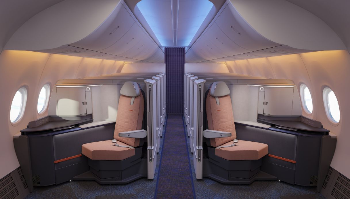 Gli A350 saranno equipaggiati con 28 sedili Collins Aerospace Horizon con seduta da 56 centimetri che si trasforma in un letto da 198 centimetri, schermo HD da 21 pollici, guardaroba personale e porte scorrevoli.