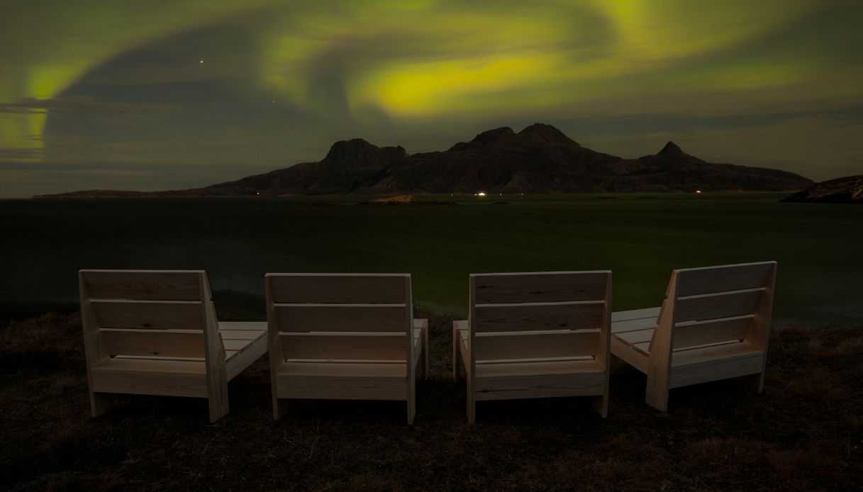 Sulla spiaggia di Ausvika – una delle più suggestive e affascinanti del Paese – sono state infatti installate delle panchine che affacciano direttamente sull’aurora boreale. Qui, ad appena dieci minuti da Bodø, il designer Sander Kommedahl ha voluto regalare un sogno a cittadini e viaggiatori di tutto il mondo.