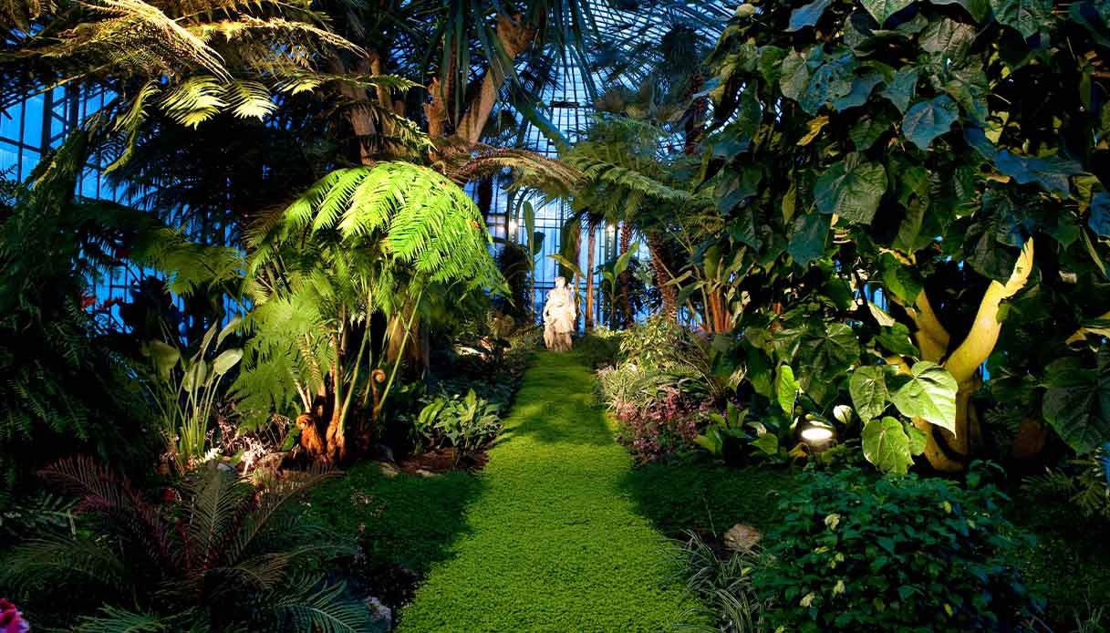 È qui, tra i padiglioni e i viali alberati, che troviamo le piante africane, le palme, le rose e le azalee, nonché la più grande collezione di camelie. Alcune specie sono conservate nel giardino principale, quelle che invece richiedono una manutenzione speciale sono protette nelle serre.