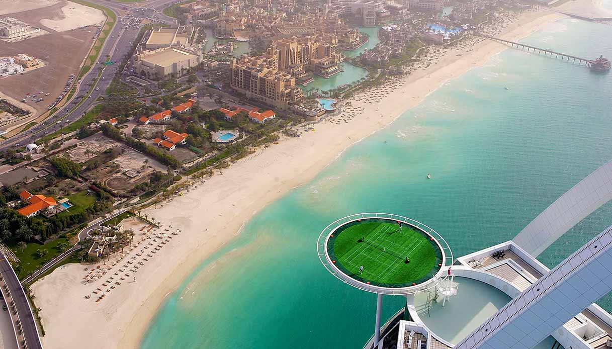 Ma è a Dubai che troviamo il campo da tennis più incredibile del mondo, lo stesso che offre un panorama da capogiro. Si trova sull’eliporto del Burj al-Arab, il celebre resort a forma di vela, la cui cima sembra toccare il cielo.