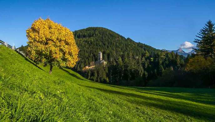 Questo delizioso castello medievale, con tanto di mura merlate, feritoie (alcune molto nascoste), torre e ponte d’accesso (un tempo c’era un ponte levatoio ma ora non serve più) costruito su uno sperone di roccia, spunta a ridosso della montagna in mezzo alla fitta vegetazione della Val Casies, una piccola valle laterale della Val Pusteria, lunga solamente una ventina di chilometri e che termina difronte a una montagna al di là della quale c’è già l’Austria.