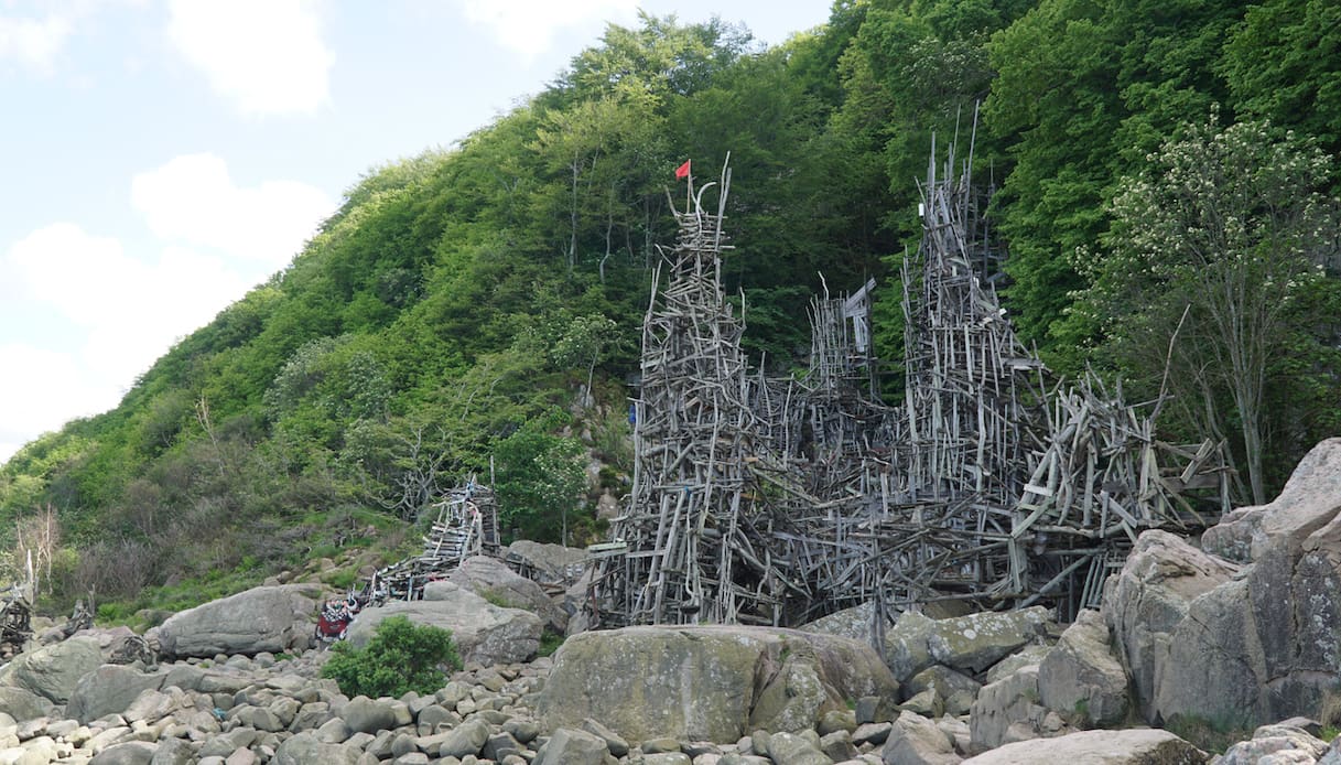 Siamo negli anni ’80, nel cuore di un luogo magico: la riserva naturale di Kullaberg. Quest’ultima è un’oasi incontaminata situata su una propaggine della Svezia meridionale che si affaccia sullo stretto di Kattegat, un posto impervio e difficile da raggiungere. Proprio qui, con una splendida vista sul mare, l’artista svedese Lars Vilks decide di dare sfogo al suo estro e mettere in cantiere due opere meravigliose. Nasce così dapprima Nimis, una scultura composta da ben 75 tonnellate di legna, e poco dopo Arx, una “fortezza” realizzata interamente in pietra.