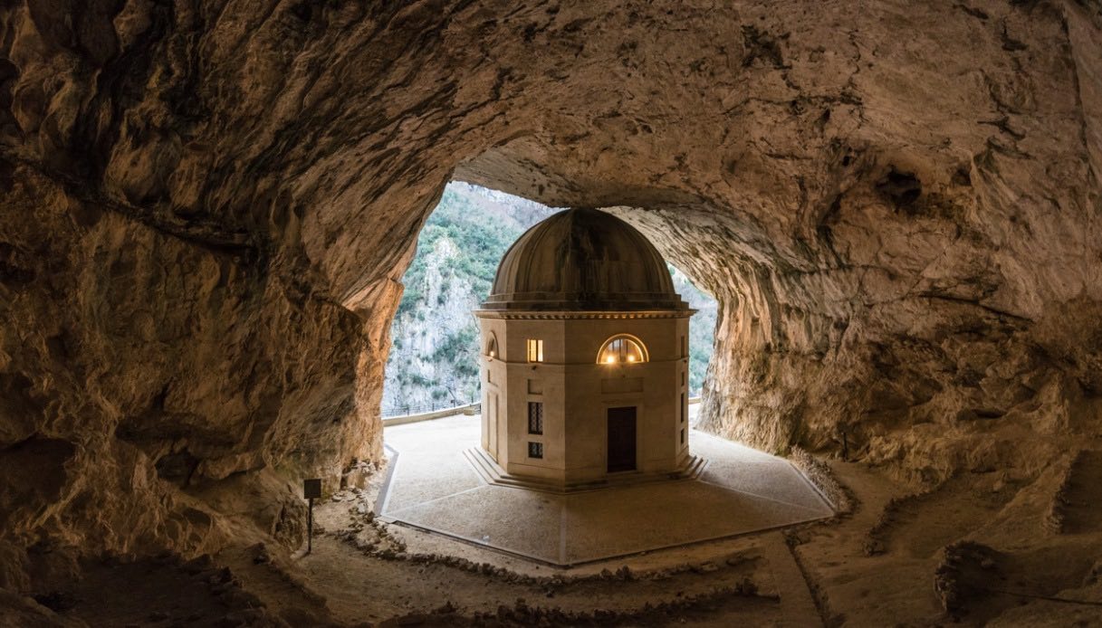 Si tratta di un tempio incastonato nella roccia costruito proprio nel ventre dei massicci che dominano il territorio di Genga, nelle Marche, dall’architetto Giuseppe Valadier. Un capolavoro architettonico unico in Italia che lascia senza fiato.