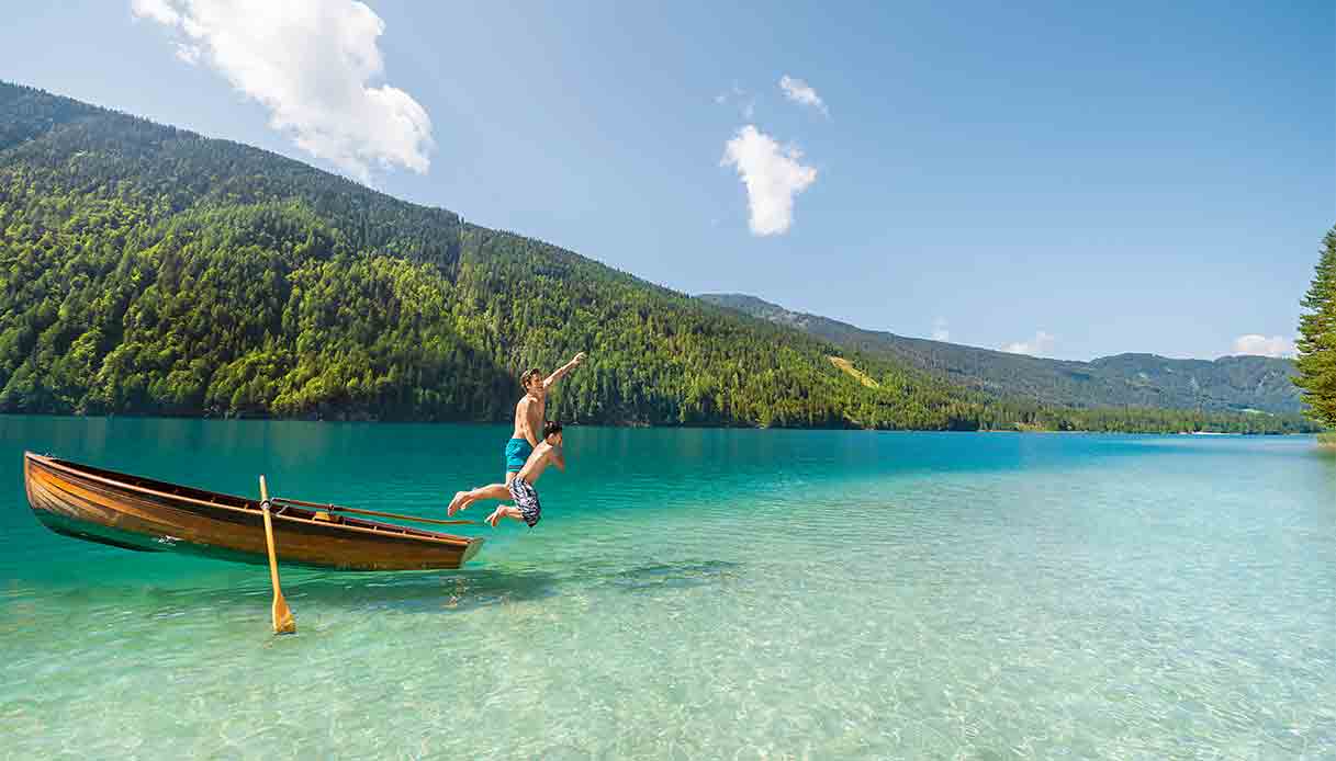 Per la sua forma, il Lago Weissensee ricorda i fiordi norvegesi. Invece si trova in Austria ed è parte del parco naturale del Weissensee grande più di 7.640 ettari. Con una costa lunga 23 km, il lago si trova a oltre 930 metri sul livello del mare. È un lago incontaminato e rigorosamente protetto, tanto che due terzi delle rive non sono raggiungibili a piedi. Per questo motivo, gli abitanti del luogo si sono impegnati fin dall’inizio per accogliere un turismo dolce e sostenibile. Le acque d’estate si scaldano fino a raggiungere i 24°C, la temperatura ideale per nuotare e fare immersioni. Inoltre, si può fare fishwatching insieme ai ranger del parco naturale oppure delle belle gite con la zattera.