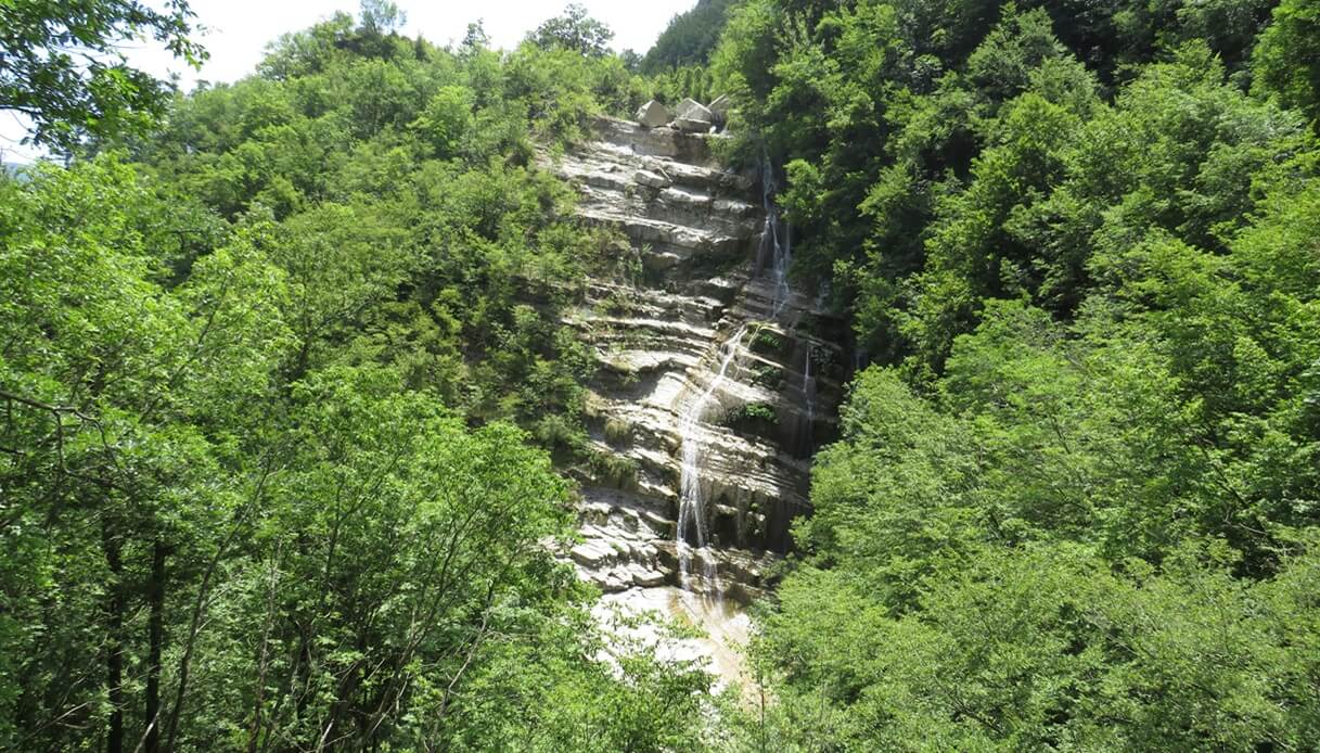 Proseguendo oltre per appena qualche centinaio di metri si raggiunge una seconda cascata, più modesta eppure scenografica: la Cascata del Lavane, un secondo torrentello che confluisce nell’Acquacheta. L’ampia zona pianeggiante intorno a questo salto è un ottimo luogo per una sosta per rifocillarsi, ma i più in forma potranno proseguire e raggiungere anche la Piana dei Romiti, affrontando un’altra breve salita.