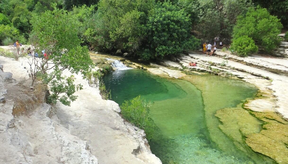 L’acqua verde, fresca e trasparente invita a tuffarsi dalle rocce nelle profondità dei laghetti, che si susseguono uno dopo l’altro con diverse altezze, dando dunque possibilità di trovare la piscina naturale più adatta ad ogni evenienza: dalla polla dove chiunque può toccare il fondale alla maestosa vasca finale dove tuffarsi senza ritegno.