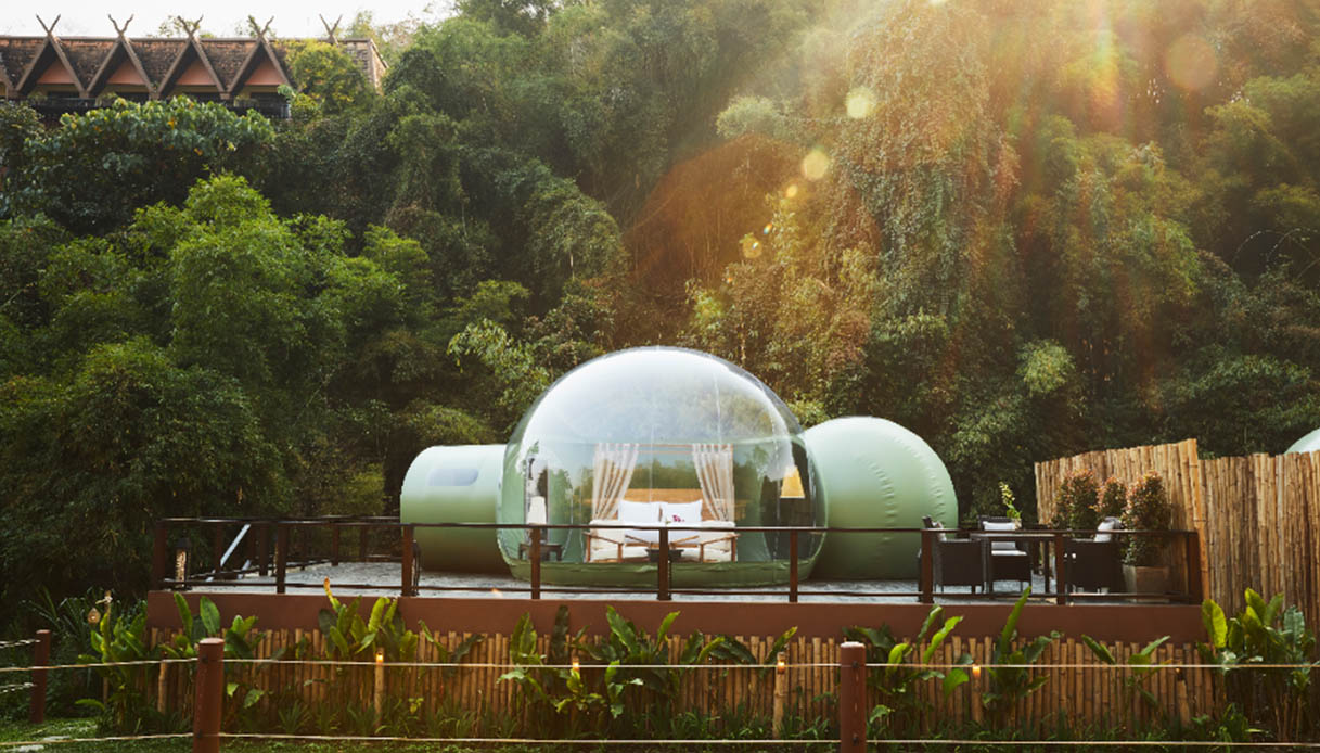 Gli ospiti dell’Anantara Golden Triangle Elephant Camp & Resort possono acquistare la notte nella Jungle Bubble come extra del loro soggiorno, per vivere un’avventura nella bolla trasparente in mezzo agli elefanti.