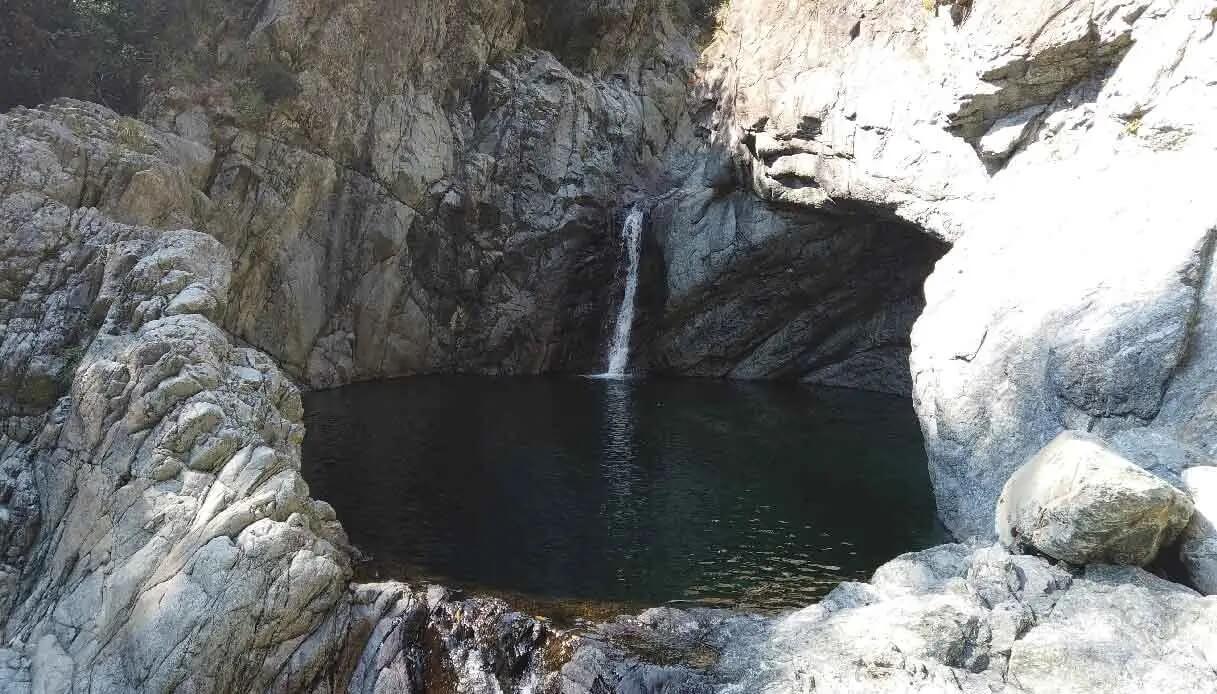 Al termine della camminata, si raggiunge questa bella marmitta dall’acqua verde e trasparente, alimentata da una bella cascatella e abbracciata da pareti rocciose aspre e selvagge.