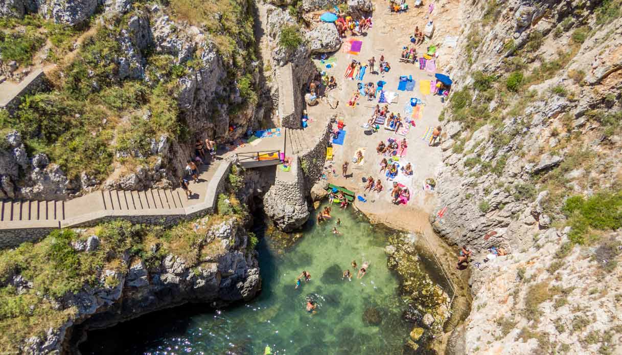 La località prende il nome dalla Grotta del Ciolo, lunga cento metri e con un inaspettato laghetto di acqua dolce all’interno, alla quale si può accedere solo dal mare. Qui, le gazze ladre (le “ciole”, in dialetto salentino) vengono a nidificare e trovano rifugio insieme ad altre specie protette, come le tartarughe marine e le foche monache. Un vero paradiso, sconosciuto ai più.