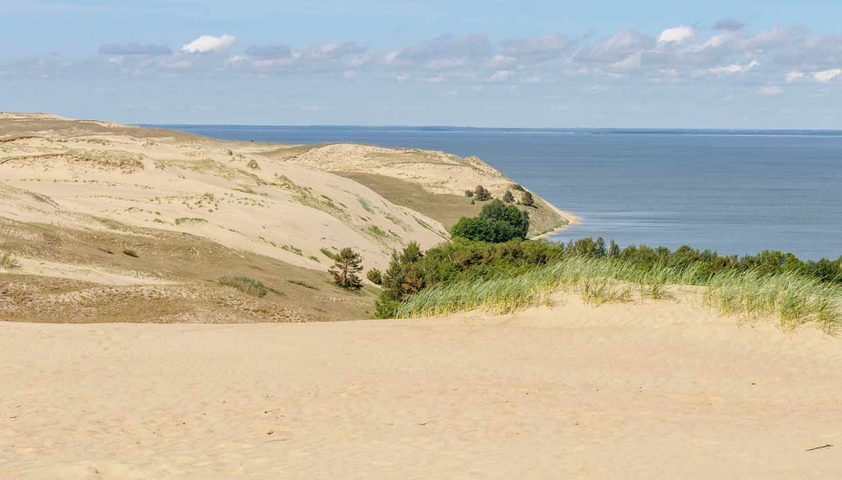 Il panorama, qui, è bellissimo e varia in continuazione a seconda di come tira il vento. Per la bellezza paesaggistica, nel 2000 l’Unesco ha iscritto la Penisola curlandese tra i Patrimoni dell’Umanità. Secondo una leggenda locale, questa lingua sabbiosa fu creata dalla gigante Neringa (che ha dato il nome alla regione) che si divertiva a giocare sulla spiaggia. In realtà, secondo gli esperti le dune della Penisola curlandese si sarebbero formate all’incirca 5.000 anni fa.